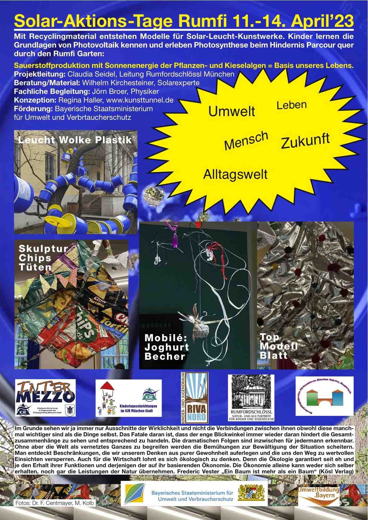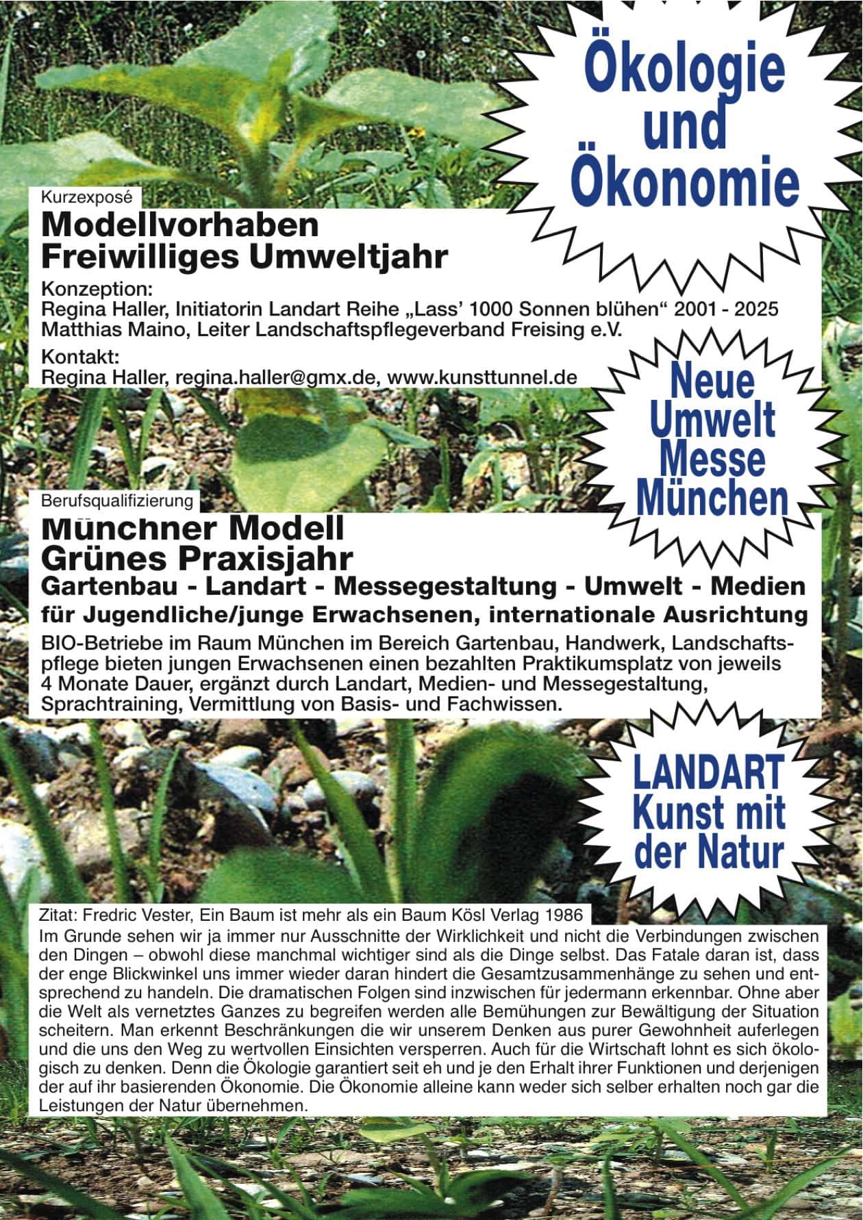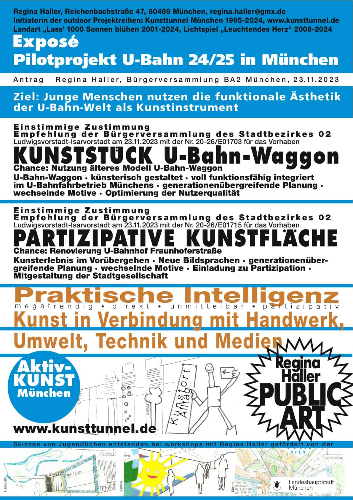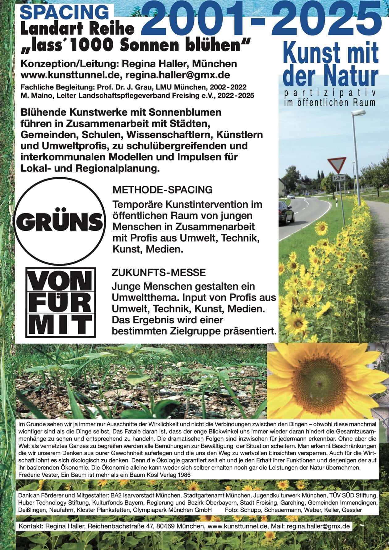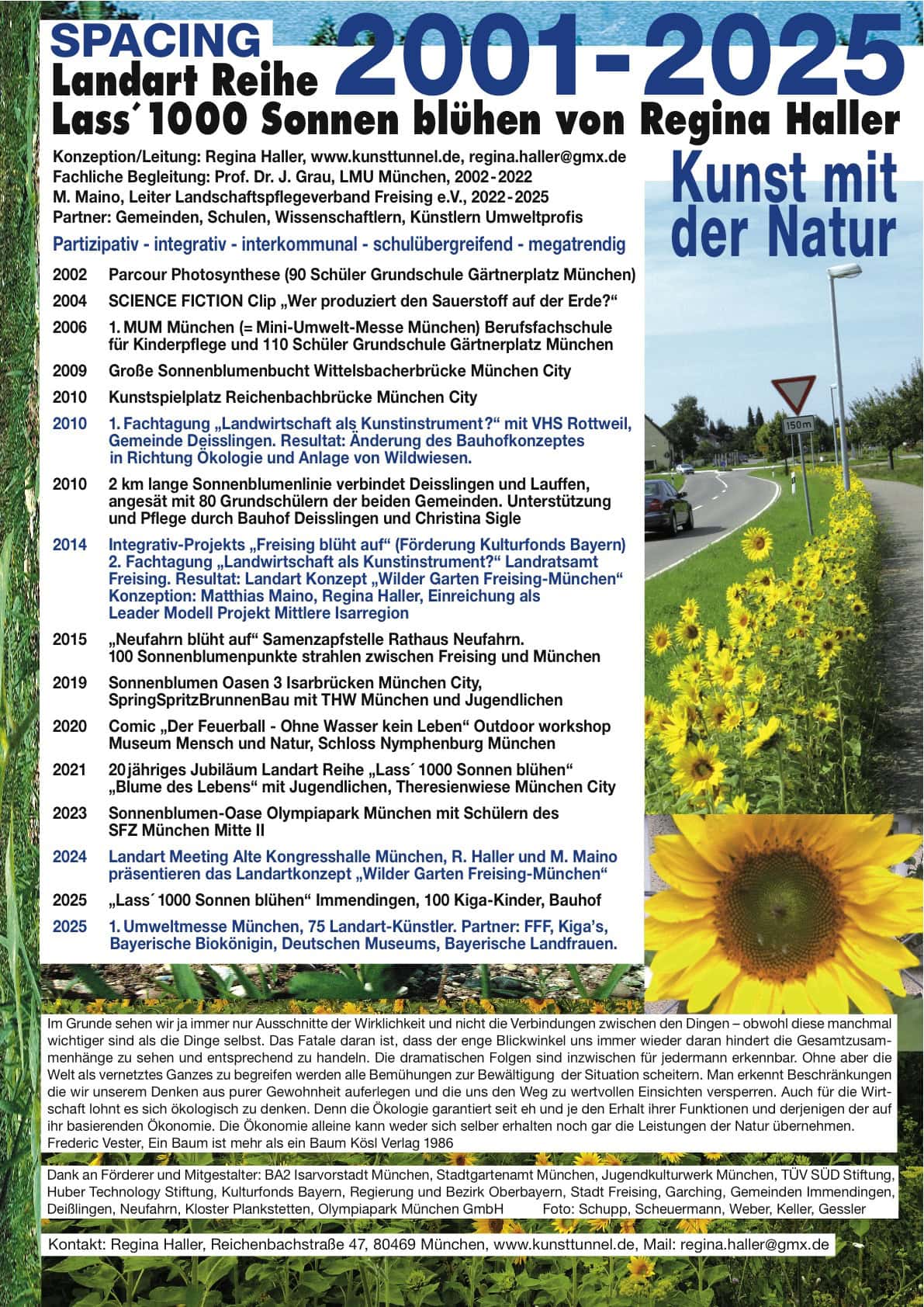 Regina Haller: „Künstlerische Handlungs- und Denkstrategien führten zu schulübergreifenden und interkommunalen Modellprojekten. Impulsen für Regionalplanung und Stadtgestaltung. Ich danke den Freunden, Förderern, Sponsoren und Mitgestaltern der freien Kunstprojekte für Ihr Vertrauen und die langjährige Zusammenarbeit.